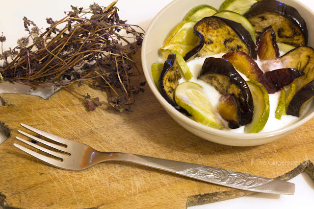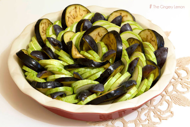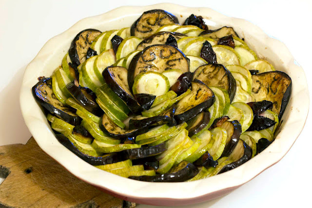На патладжана и тиквичките много им отива чесънът. Точно затова аз реших да ги комбинирам с млечен сос, подправен с чесън. А хрумката ми със запечените сини сливи, се оказа, че разнообразява вкуса на добре познатото ястие. Добавя приятна сладост и интересен поглед към иначе добре познатото ни ястие.