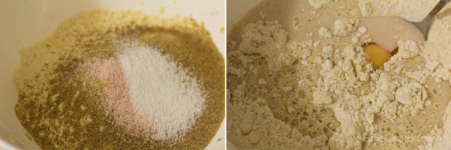 Сухите съставки се смесват в голяма купа. Към тях се прибавя яйцето и се разбърква с вилица. Добавя се разтворената мая и олиото и отново се разбърква.