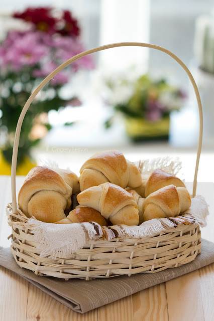 Естествено бабчето като ги прави, кифличките винаги стават по-вкусни. Тя ги прави и по-дребнички от мен, като разделя тестото на 6 топки. Аз обаче с навиването на кифлички не се справям много добре и затова разделям тестото на четири, за да мога по-лесно да ги оформя. Обикновенно ги слага в една огромна тенджера, от която човек може само да бърка, да вади и да се усмихва доволно.