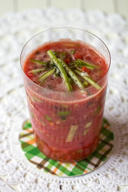 Гаспачото е много вкусна и освежаваща лятна супа. От досегашния ми опит ключът към успешното и приготвяне е използването на вкусни домати и домашно приготвен прясно изцеден доматен сок. Гаспачото може да бъде допълнително овкусено със ситно накълцана люта чушка и с допълнително зелении като босилек и магданоз.
