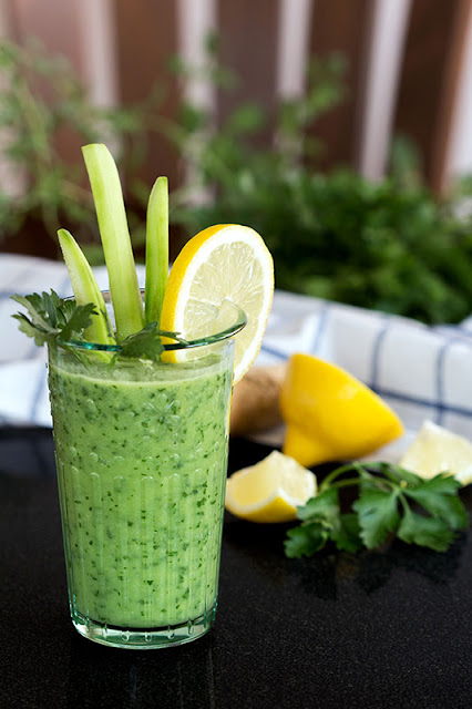 Свежо и зелено! Смутито с този цвят дава енергия за цял ден! Харесва ми „кика“ на джинджифила, свежеста на лимона, аромата на магданоза и плътността на авокадото. Достатъчно хранително е и определено няма да се чувствате гладни след една две чашки от него. Направете си го в голяма чаша или халба за бира и го пийте с кеф с ей тез широки сламки от IKEA!